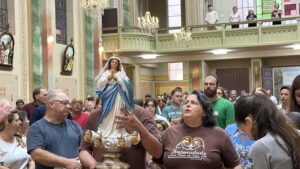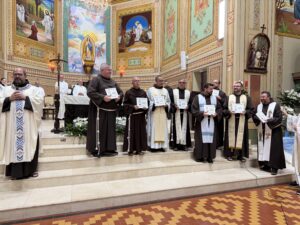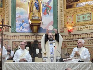Nesse espírito missionário, o Ministro Provincial enfatizou que todos são missionários, recordando o Evangelho: “Receba o Espírito Santo para sair anunciando. Ide pelo mundo inteiro e anunciai o evangelho. Ide pelo mundo inteiro e dizei aos homens e às mulheres que estão caídos: eu quero erguê-los. E a igreja nasceu assim, com espírito missionário. E esse espírito missionário fez com que estivéssemos aqui nestas terras. Uma vez que nós celebramos os 150 anos de criação desta paróquia, os 125 anos de presença dos frades aqui junto deste povo, nós renovamos a nossa disposição de também nós sermos missionários”.