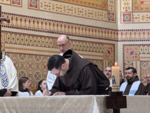 A renovação dos votos de um frade é a profissão de fé daquilo que acredita ser enquanto religioso franciscano. Enquanto assinava a confirmação de seus votos, Frei Paulo convidou a todos para aplaudir esse momento importante na vida de Frei Gilberto, que no próximo ano estará em Petrópolis na fraternidade do Sagrado Coração de Jesus, iniciando os estudos de teologia.