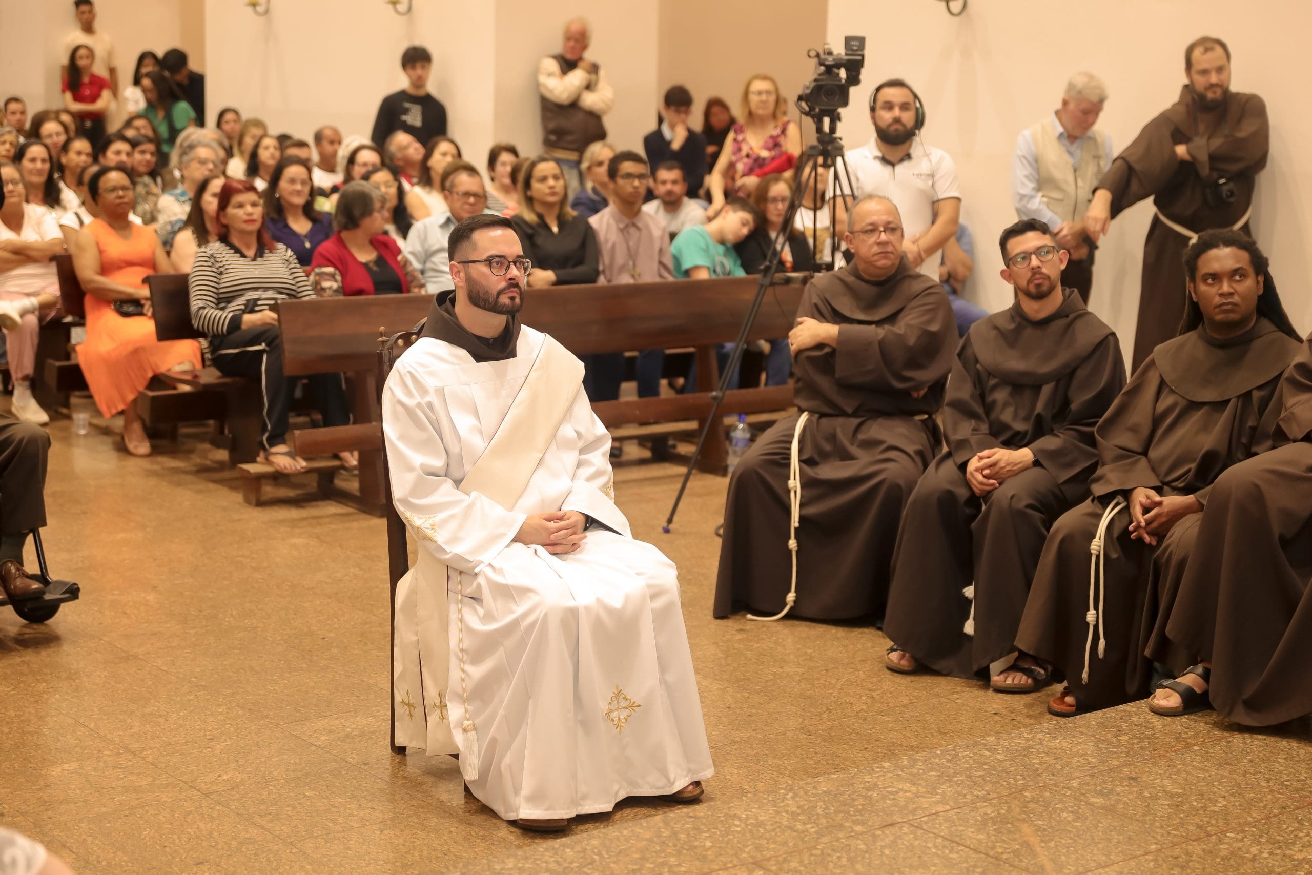 O dia 23 de novembro ficará marcado na história da Catedral Sant´Ana de Itapeva (SP). Frei Danilo Santos Oliveira foi o primeiro Frei da Província Franciscana da Imaculada Conceição do Brasil, a ser Ordenado Presbítero na Catedral de Itapeva, pelas mãos de Dom Eduardo Malaspina. Frades dos diversos estados da província, padres da Diocese, família do ordenado, grupo de paroquianos da paróquia São Luiz Gonzaga, onde o frei atua desde janeiro de 2024, e os paroquianos das Comunidades de Itapeva lotaram a igreja para acompanhar esse grande momento.