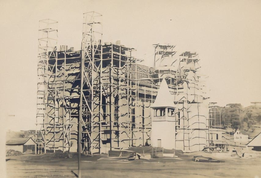 Frei Flávio responsável pela organização dos materiais e da construção corria atrás de pedras, tijolos, material de construção e trabalhadores. Para tornar a obra independente comprou uma amassadeira metálica e um caminhão, assim a construção pode prosseguir.