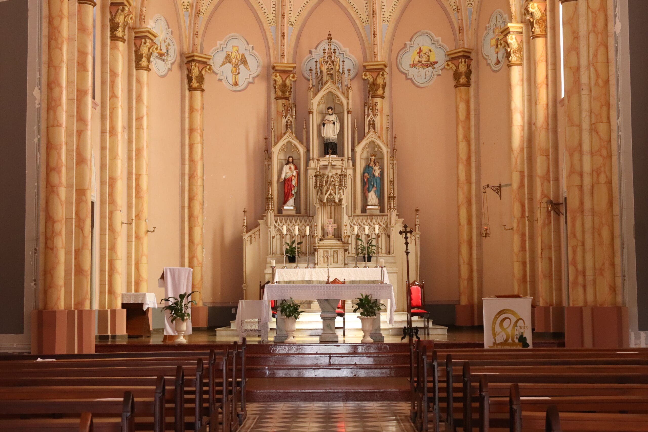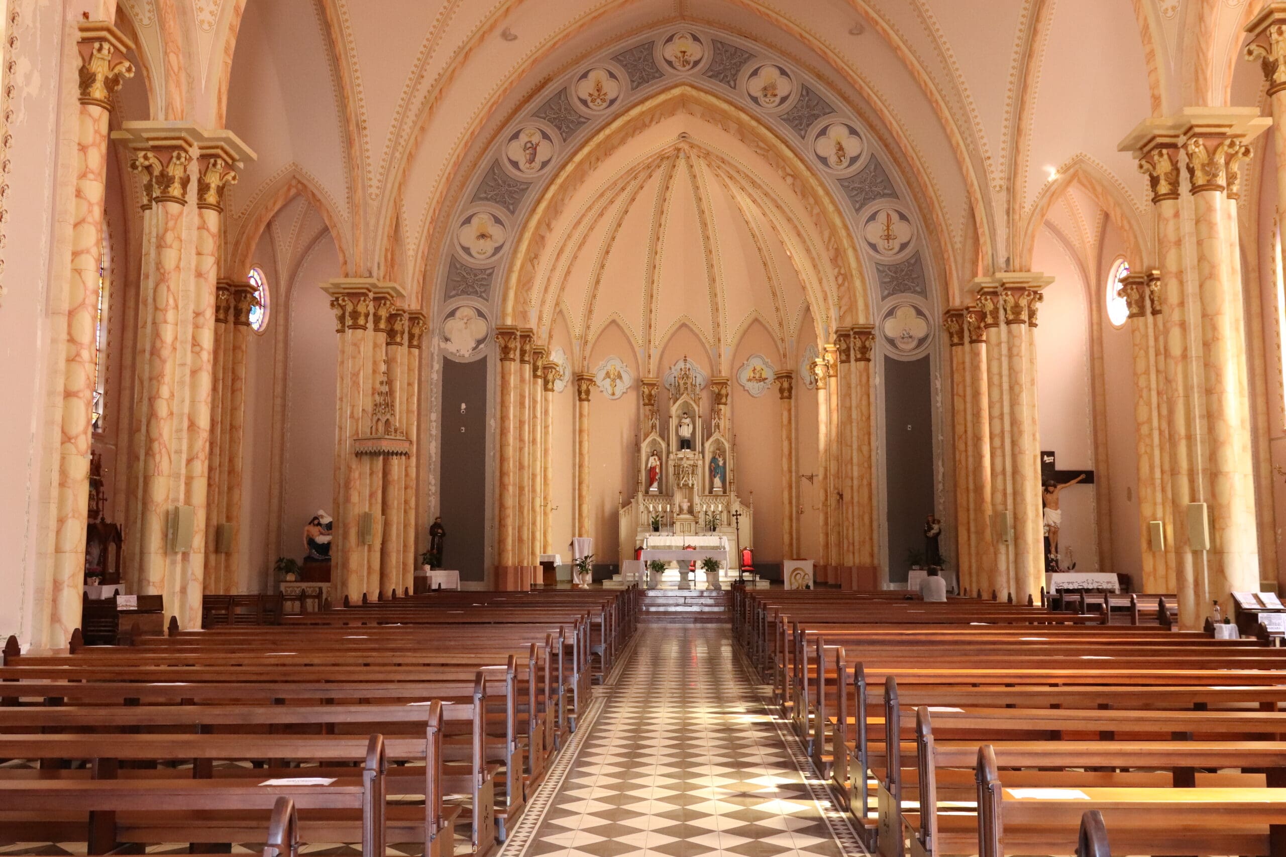 Foi no ano seguinte, em 1953, que o piso da igreja foi colocado e logo após os bancos de madeira foram adquiridos. Os altares foram comprados em 1957 vindos de Blumenau (SC). Entre 1958 e 1959 as pinturas internas foram realizadas pelo artista plástico Emílio Benvenutto Zanon, natural de Guaporé (RS) o artista era conhecido por trabalhar com obras no campo da arquitetura religiosa, arte vitral e restaurações. Os destaques nas pinturas são no teto com os afrescos que fazem alusão aos 10 mandamentos, e no arco-cruz onde há menção aos 7 sacramentos. Os sinos foram comprados em 1963 e os relógios em 1965.