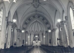 A ideia de construir uma nova igreja, maior e em alvenaria partiu de Frei Plácido Rohlf, em 1941. No entanto, foi em 1947 que ocorreu o lançamento da Pedra Fundamental para a concretização de um ideal comunitário. Para a solenidade que aconteceu nos dias 15 e 16 de fevereiro foram convidadas várias autoridades, como Dom Frei Carlos Eduardo Sabóia de Mello que presidiu o momento celebrativo. Também estavam presentes Frei Bruno Linden que era o pároco da época e Frei Flávio Kneip que coordenou toda a construção.