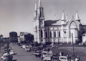 Em 1949 uma comissão se reuniu para deliberar sobre os vitrais da Matriz. A equipe combinou com os representantes da empresa Arte Decorativa de Curitiba (PR) os preços e as imagens. Frei Flávio já havia visitado a empresa no início do ano para verificar a qualidade e contratar a companhia. A comissão definiu que abaixo de cada vitral colocado na igreja estaria o nome das famílias que contribuíram financeiramente para a instalação. De acordo com os registros da Crônica da fraternidade Franciscana as obras prosperaram tanto que no mesmo ano a missa de Natal pode ser celebrada na Igreja Matriz. No último domingo, dia 26 de março de 1950 o Frei Cassimiro Vicenz benzeu a Matriz e desde aquele dia as celebrações aconteceram na igreja.