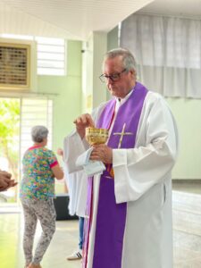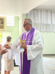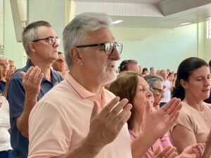 Na manhã desta quarta-feira de Cinzas, o salão paroquial esteve lotado de fiéis para a Santa Missa com imposição das cinzas. A Santa Missa foi presidida por Frei Jacir Zolet e transmitida pelas redes sociais da paróquia no Facebook e Youtube.