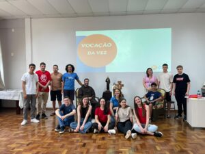 Na tarde do dia 25 de outubro, estiveram reunidos no piso superior do salão paroquial jovens da paróquia para o projeto Jovem Cristão, voltado para o conhecimento pessoal e vocacional. Os encontros são coordenados pelo Serviço de Animação Vocacional (SAV) dos irmãos Maristas.
